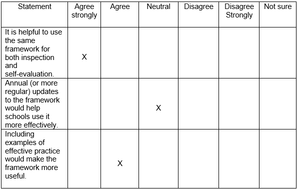6.2 To what extent do you agree or disagree with the following statements about a school inspection framework?