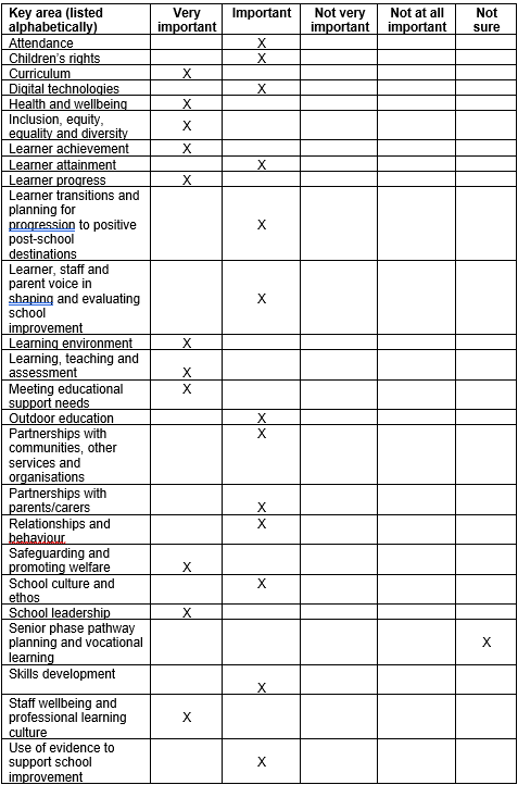 6.3. How important do you think each of these areas is for inclusion in a school inspection framework?